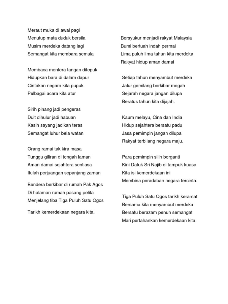Sajak Negaraku Merdeka Nukilan Ds Zambry